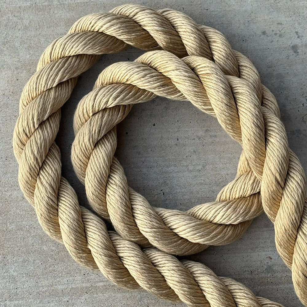 A combination polyester dacron rope offering breaking strengths exceeding 10 tons. Soft to the touch, retains its color indoors as well as outdoors. Dyes are solid dye to the core of the fabric, for the outmost quality, durability and color retention. All ropes in this collection with the exception of Luxe Manila are made with this material.