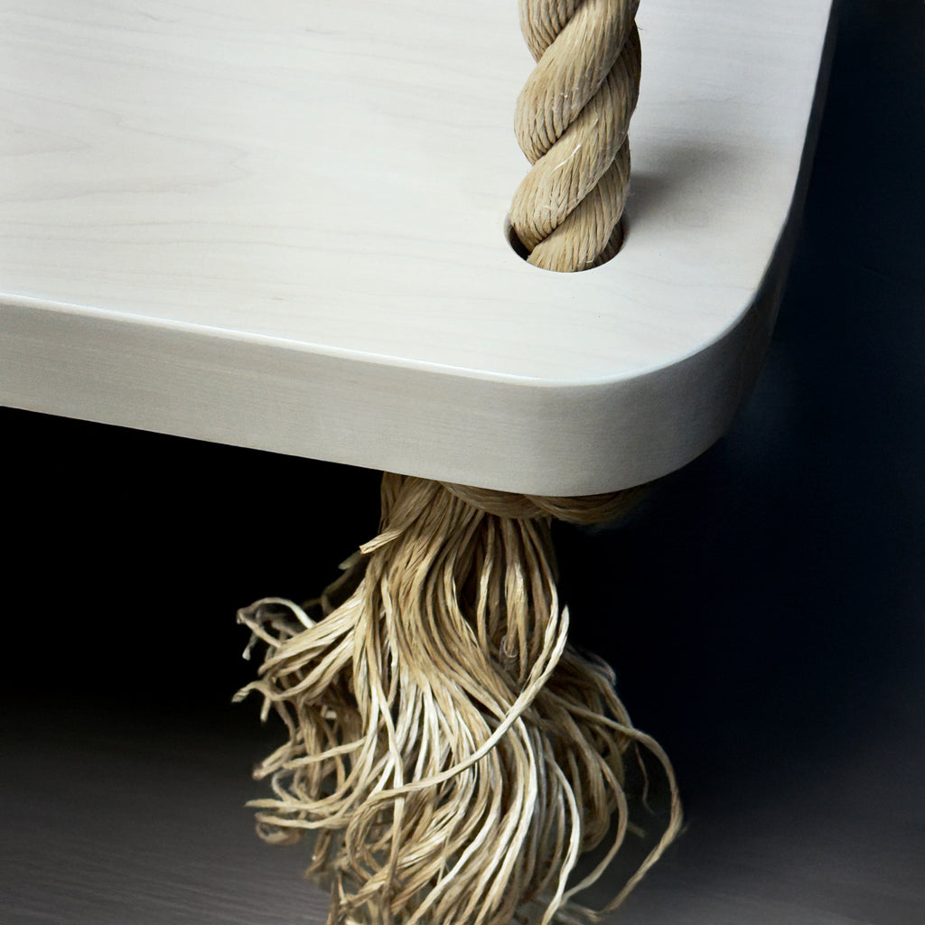 Stains & Lacquers: Our stains and lacquers are eco friendly, zero VOC. Rope System We offer three hanging options, with choice of rope and hardware finish as applicable. Ropes are 1.5" diameter for all systems. Rope Hooks : System is decorative and must be used with included legs. Does not swing. Choice of Hook finish. Rope & Cap: System is decorative and must be used with included legs. Does not swing. Cap color will match selected wood finish. Rope & Hangers : This system included ceiling hooks. Swings freely. Does not include legs.