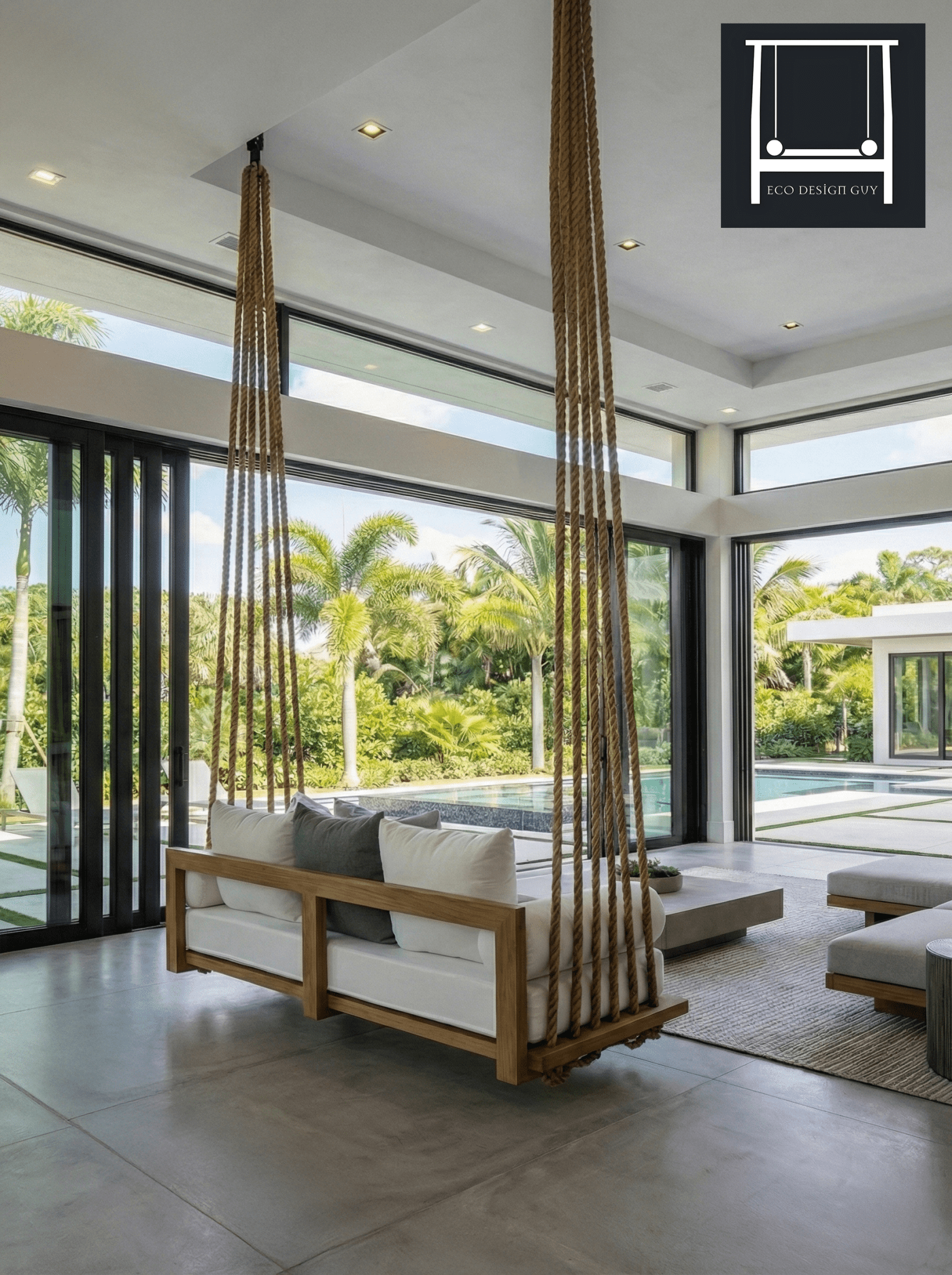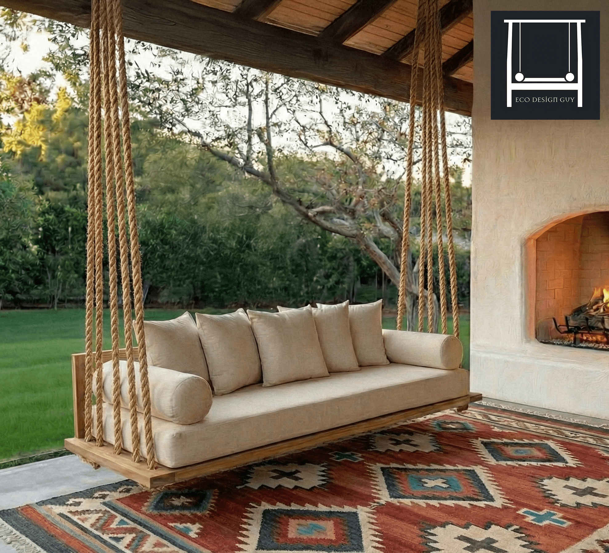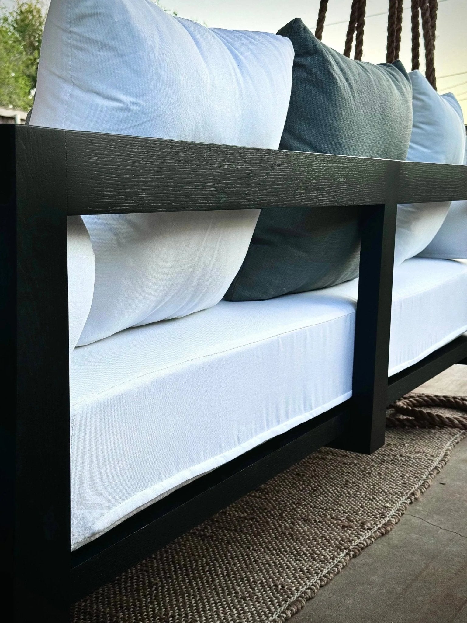 Crafted with meticulous attention to detail, lines of rope weave into the left and right sides of the swing bed frame, creating a visually striking architectural and sculptural feature that is sure to become the focal point of any outdoor space.